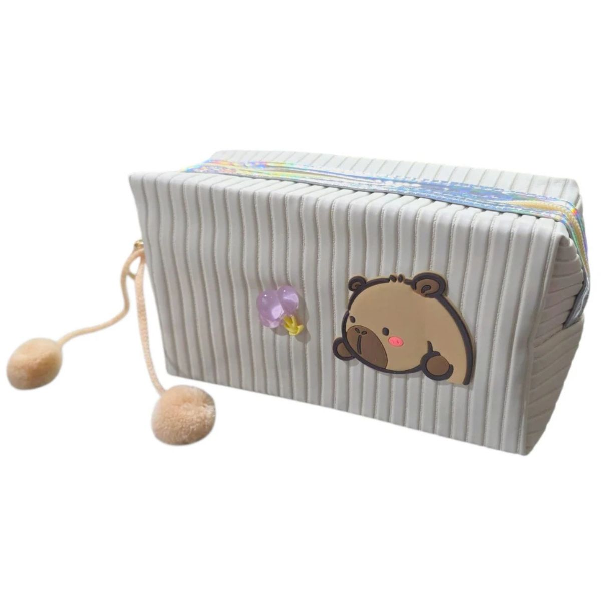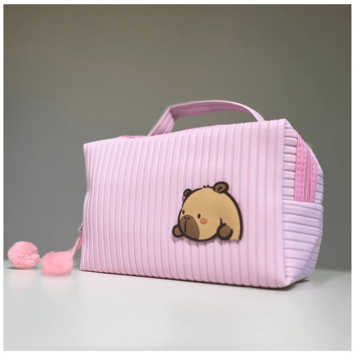 ¡El accesorio más tierno para llevar tus esenciales! Este adorable Estuche Porta Cosméticos de Capybara Rayado destaca por su textura de tela rayada ultra suave y su encantador diseño. Es el compañero perfecto para organizar tu maquillaje, artículos de cuidado personal o útiles escolares con un toque de dulzura.