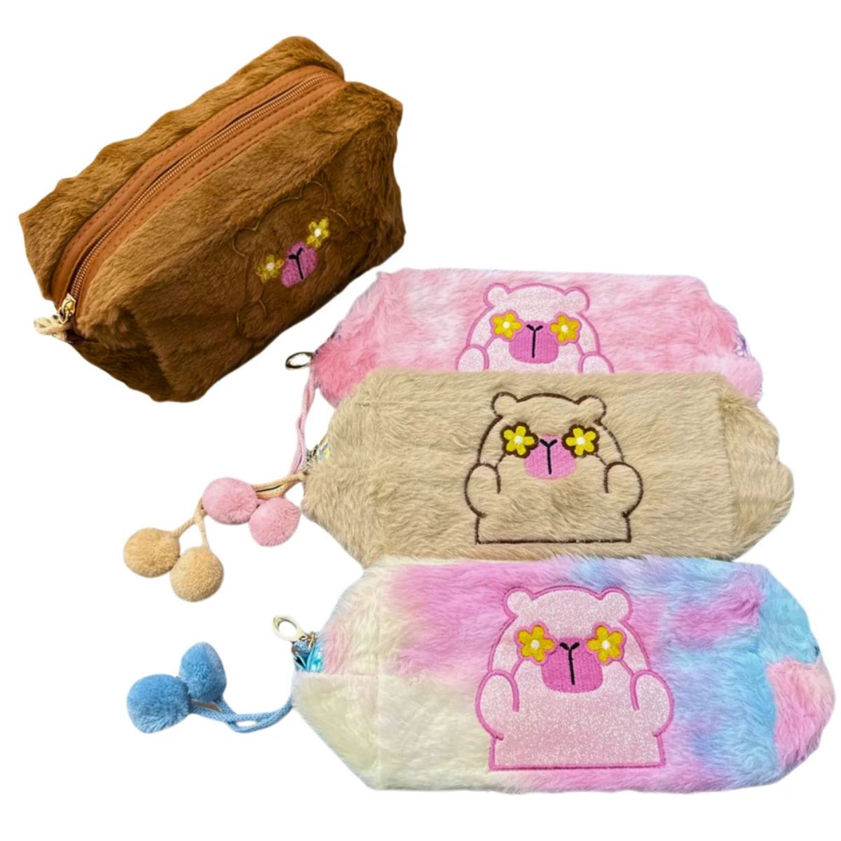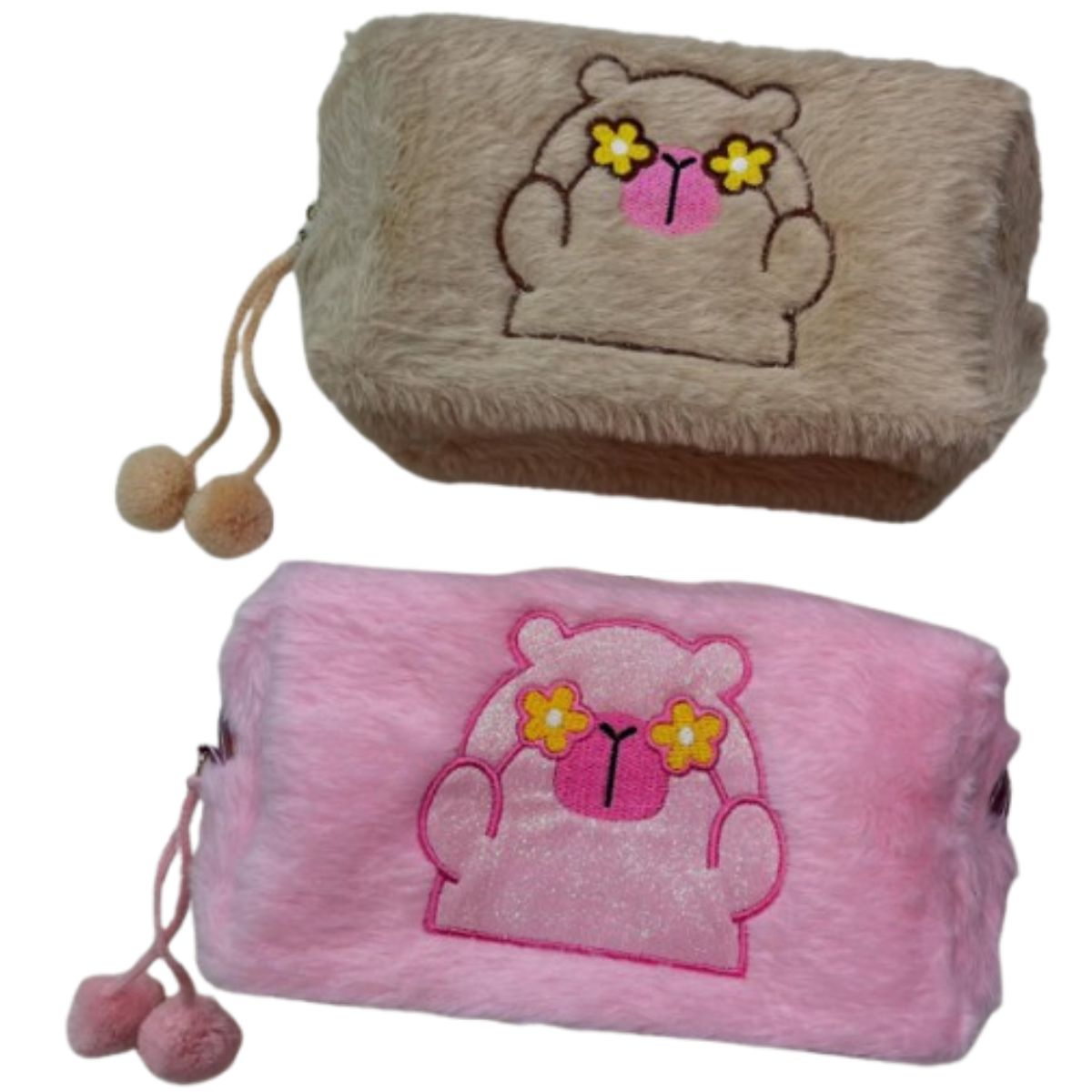 ¡El accesorio más tierno para llevar tus esenciales! Este adorable Estuche Porta Cosméticos de Capybara destaca por su textura de felpa falsa ultra suave y su encantador diseño. Es el compañero perfecto para organizar tu maquillaje, artículos de cuidado personal o útiles escolares con un toque de dulzura.